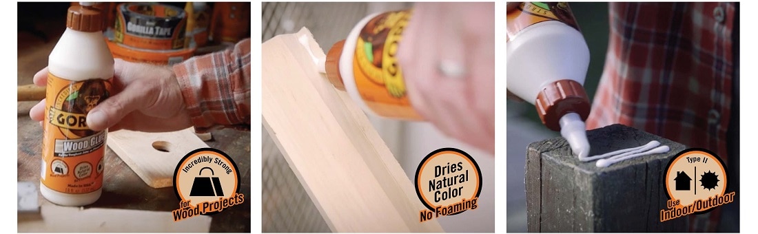 Gorilla Wood Glue is the reliable adhesive that woodworkers, carpenters and hobbyists trust for their woodworking projects. Gorilla Wood Glue, a PVA glue, offers the benefits of an easy-to-use water based adhesive. Gorilla Wood Glue's premium formula creates a cross-linking bond to provide superior strength indoors or out.