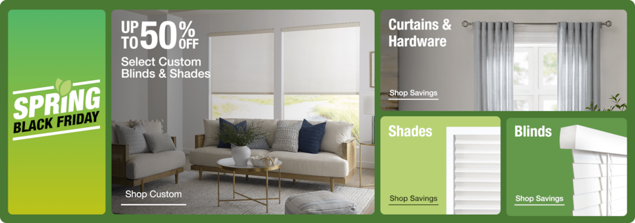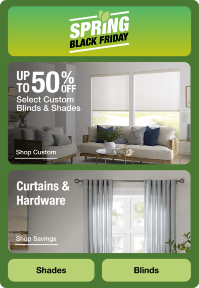 Select Custom Blinds & Shades. Ends 3/18.