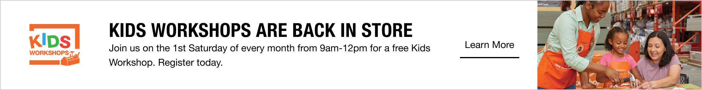 Join a Home Depot workshop at your nearest store. Our store associates can help you kick off a DIY project with confidence. From drywall repairs and paint projects to kids’ crafts. You’ll also learn proper safety measures and skill building.