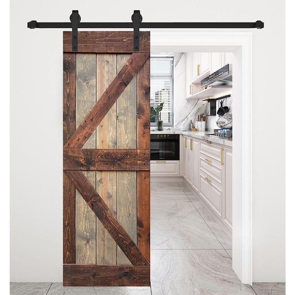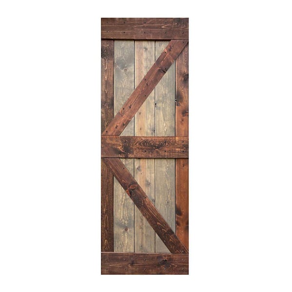 K Style 30 in. x 84 in. Brown/Walnut Finished Solid Wood Sliding Barn Door Slab - Hardware Kit Not Included