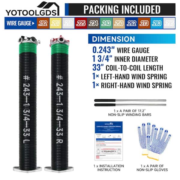 0.243 in. Wire x 1.75 in. x 33 in. Electrophoresis Garage Door Torsion Springs in Green Left and Right with Winding Bars