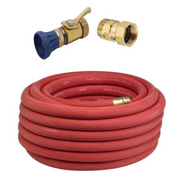 0.75 in. dia. x 75 ft. Red Water Hose w/Precision Cloudburst Nozzle & Hose Adapter
