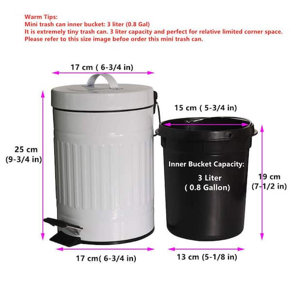 0.8 Gal. White Mini Metal Pedal Trash Can