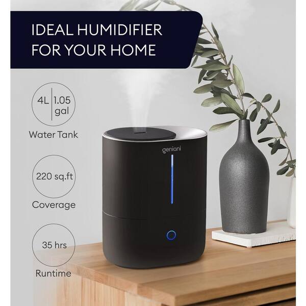1.05gal Top Fill Cool Mist Humidifier For Bedroom 356sqf Coverage - Geniani Humidifier Black