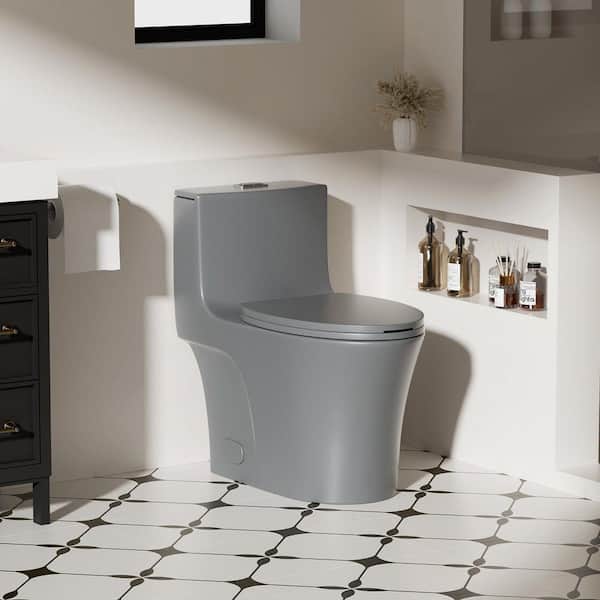 1.1/1.60 GPF Dual-Flush 1 Piece Elongated Toilet,Button on Tank Top, Soft Closing Seat,Water-Saving 1000g MAP, Grey