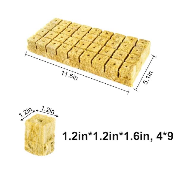 1.2 in. Rockwool Grow Blocks for Hydroponics Soilless Cultivation Seedlings Germination Start (4-Sheets, 144-Plugs)