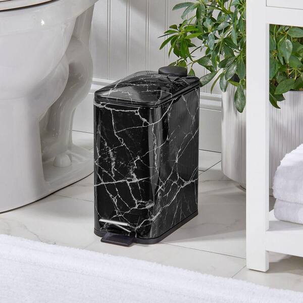 1.3 Gal. Rectangular Small Steel Step Trash Can Wastebasket in Black Marble
