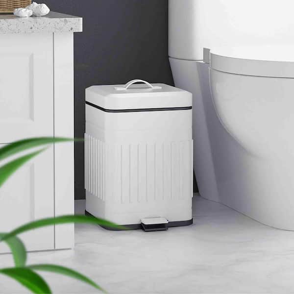 1.3 gal. White Farmhouse Retro Metal Trash Can with Lid