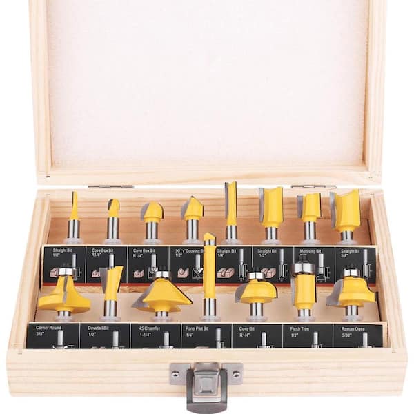 1/4 Inch Alloy Steel Router Bit Set Woodwork Tools with Wooden Case for Beginners and DIY Projects (15-Pack)