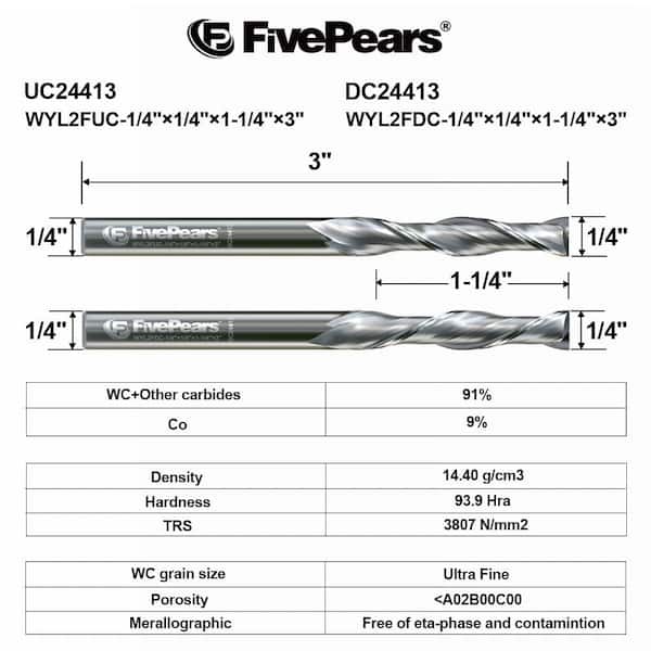 1/4 Inch Carbide Spiral Router Bits Set Up and Down Cut End Mill with Wear-Resistant Design for CNC Woodworking (2-Pack)