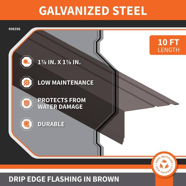1-7/8 in. x 1-7/8 in. x 10 ft. Galvanized Steel Drip Edge Flashing in Brown