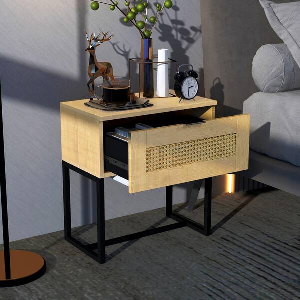1-Drawer Natural Nightstand Side Table with Wicker Rattan, Sofa Side Table(19.7 in. L x 15.7 in. W x 21.7 in. H.)