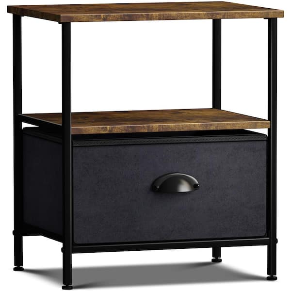 1-Drawer Rustic Black Nightstand 18.37 in. H x 15.75 in. W x 15.75 in. D