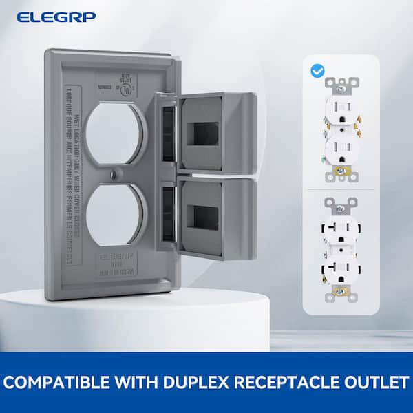 1-Gang Horizontal Duplex Weatherproof Wall Plate Cover, Outdoor Electrical Outlet Cover, UL Listed (5-Pack,Gray)