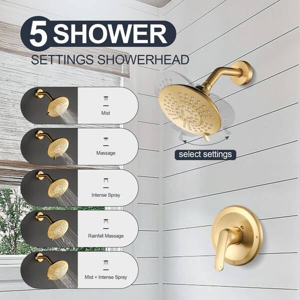 1-Handle 5-Spray Shower Faucet 1.8 GPM with Pressure Balance and Tub Spout in Gold