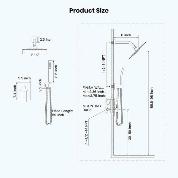 1-Handle Wall Mount Shower Trim Kit Brushed Gold with Hand Shower-1.46 GPM (Valve Included)
