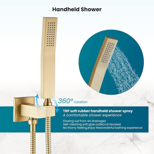 1-Handle Wall Mount Shower Trim Kit in Brushed Gold with Hand Shower-1.46 GPM (Valve Included)