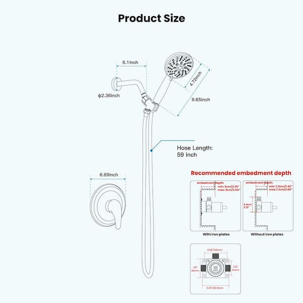 1-Handle Wall Mount Shower Trim Kit in Brushed Gold with Hand Shower-1.8 GPM (Valve Included)
