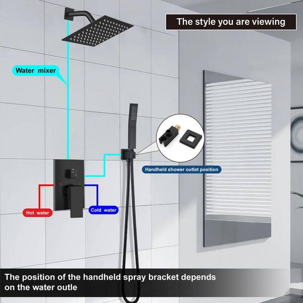 1-Handle Wall Mount Shower Trim Kit in Matte Black with Hand Shower-1.28 GPM (Valve Included)