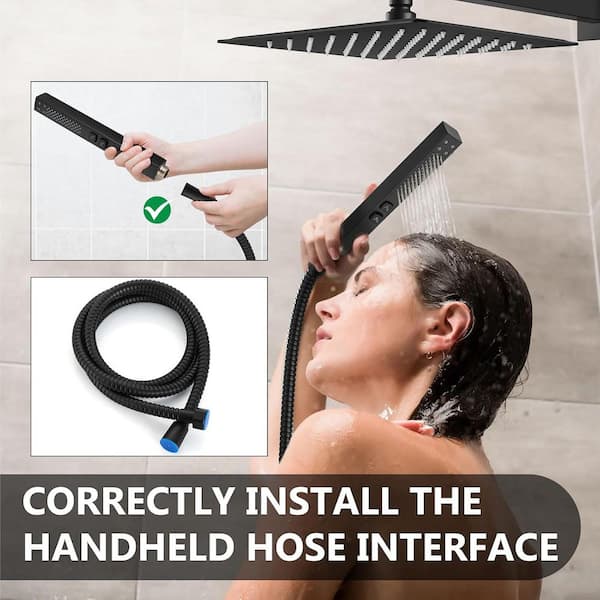 1-Handle Wall Mount Shower Trim Kit in Matte Black with Hand Shower-1.46 GPM (Valve Included)