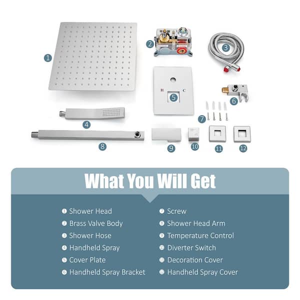 1-Handle Wall Mount Shower Trim Kit in Polish Chrome with Hand Shower-1.46 GPM (Valve Included)