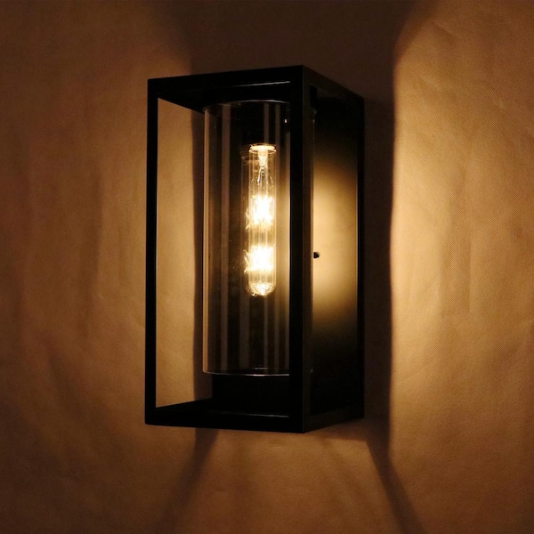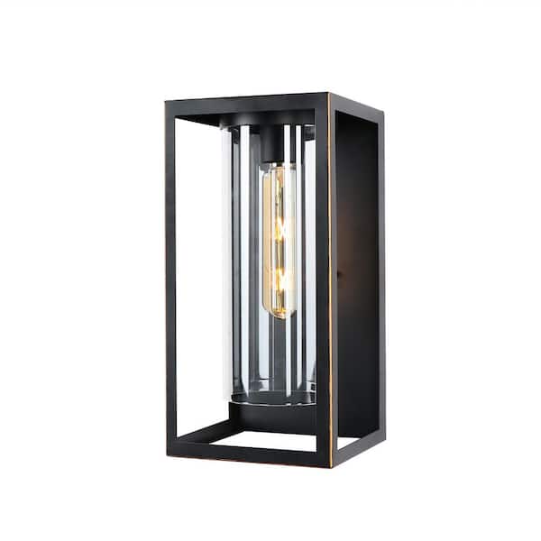 1-Light 16 in. Outdoor Imperial Black Wall Lantern Sconce