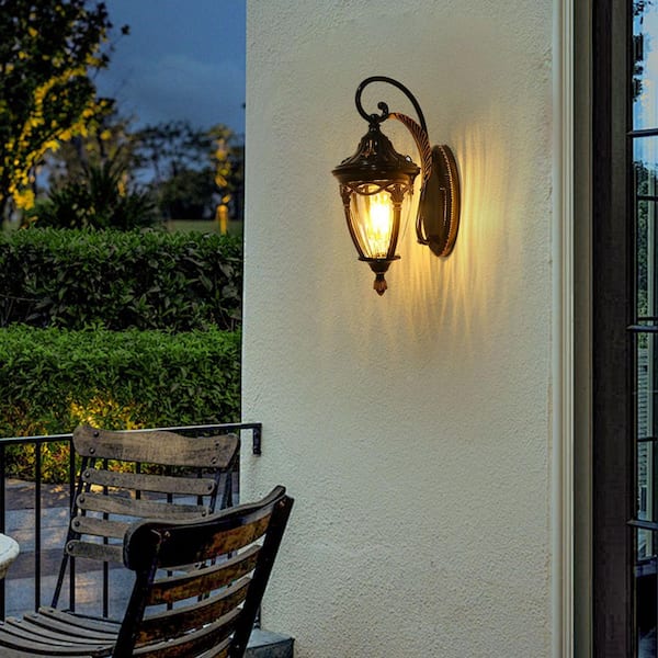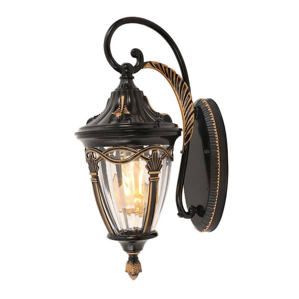1-Light Black Antique Outdoor/Indoor Waterproof Wall Sconce Wall Light with Clear Glass Shade, No Bulbs Included