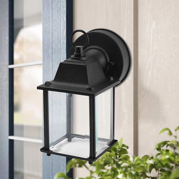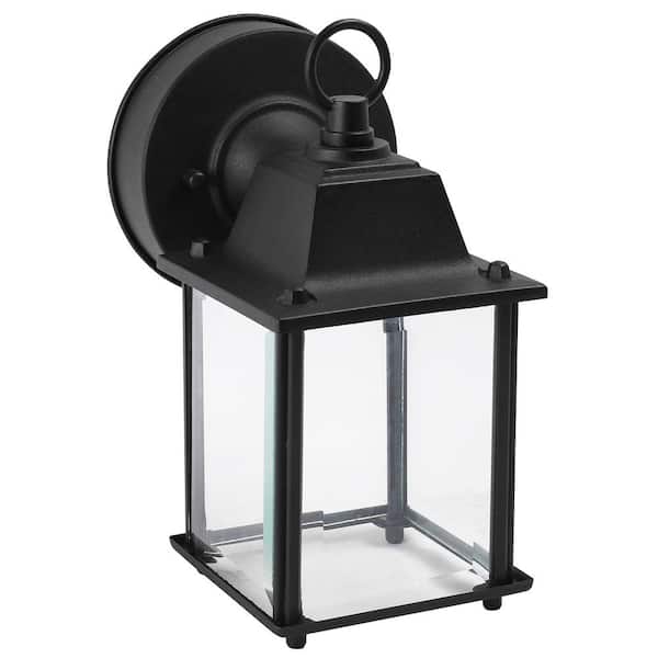 1-Light Black Hardwired LED Outdoor Wall Lantern Sconce (1-Pack)