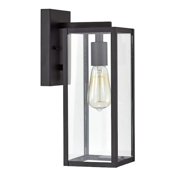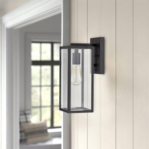 1-Light Black Hardwired Outdoor Wall Lantern Sconce Porch Light With Clear Glass