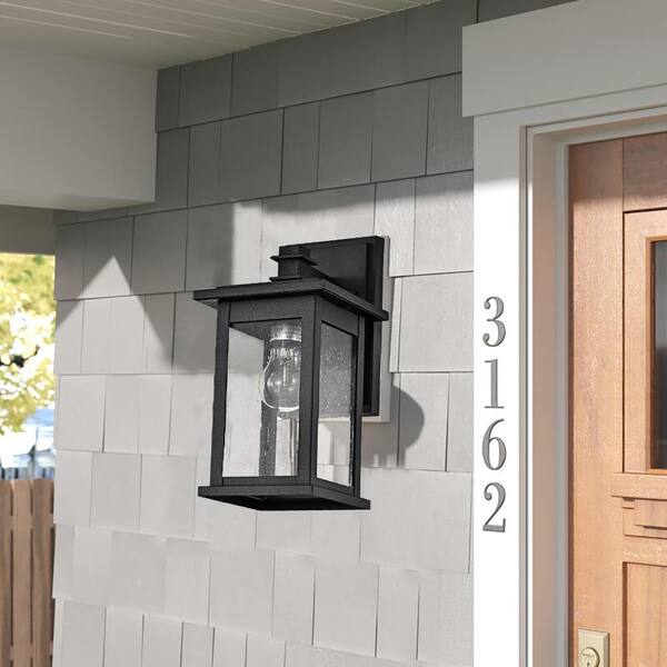 1-Light Black Hardwired Outdoor Wall Lantern Sconce Porch Light with Clear Seedy Glass