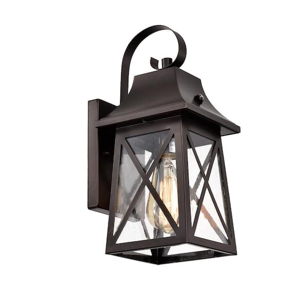 1-Light Black Hardwired Outdoor Wall Lantern Sconce Porch Light with Clear Seedy Glass