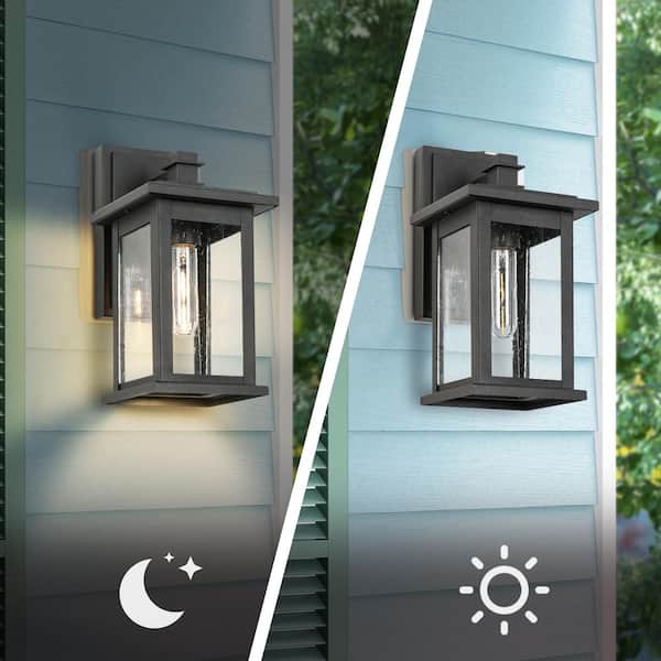 1-Light Black not Motion Sensing Dusk to Dawn Outdoor Hardwired Wall Lantern Sconce with No Bulbs Included