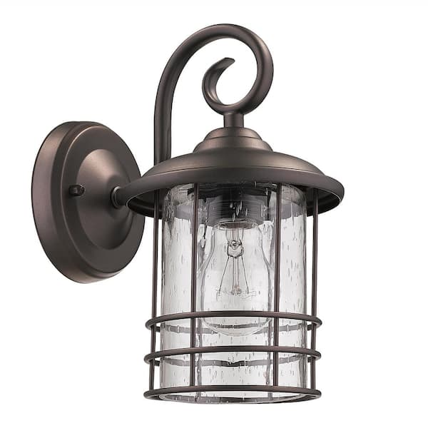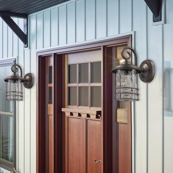 1-Light Brown Hardwired Outdoor Wall Lantern Sconce Porch Light with Clear Seedy Glass(2-Pack)