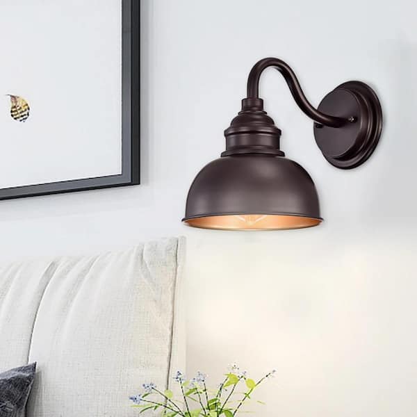 1-Light Brown Round Hardwired Outdoor Wall Lantern Sconce Porch Light