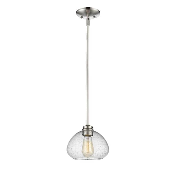 1-Light Brushed Nickel Shaded Mini-Pendant with Clear Seedy Glass Shade