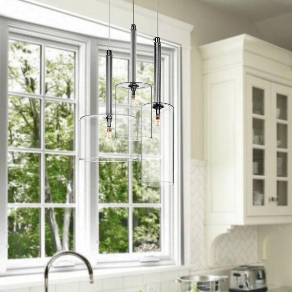 1-Light Clear Cylinder Pendant Light with Glass Shade