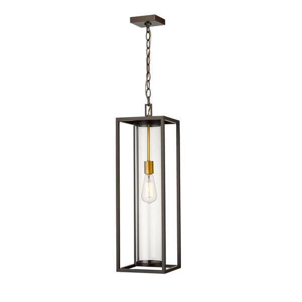 1-Light Deep Bronze and Outdoor Brass Outdoor Pendant Light with Clear Glass Shade