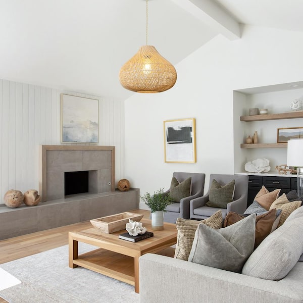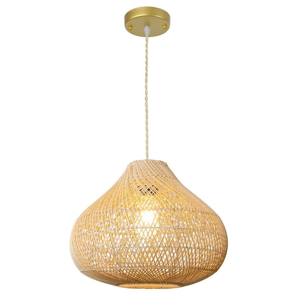 1-Light Gold Rattan Large Boho Hand Woven Coastal Wicker Pendant Light Fixture for Dining Room