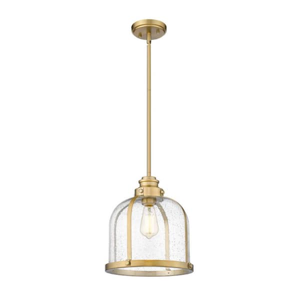 1-Light Heritage Brass Pendant with Clear Seedy Glass