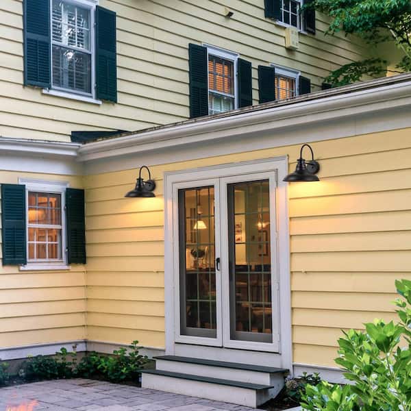 1-Light Matte Black Dusk to Dawn LED Outdoor Barn Light (2-Pack)
