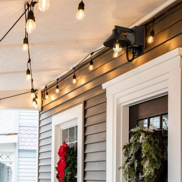 1-Light Matte Black Hardwired Outdoor Barn Light Sconce with GFCI Outlet 1-Pack