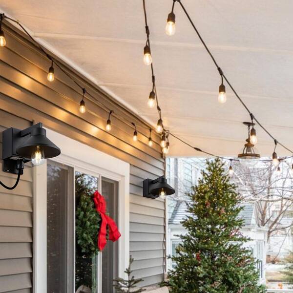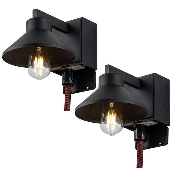 1-Light Matte Black Hardwired Outdoor Barn Light Sconce with GFCI Outlet 2-Pack