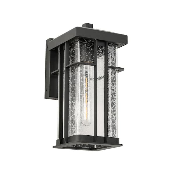 1-Light Matte Black Metal not Motion Sensing Outdoor Hardwired Wall Sconce with No Bulbs Included