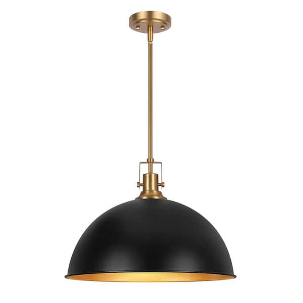 1-Light Modern Black Single Pendant Light with Metal Dome Shade for Kitchen Island