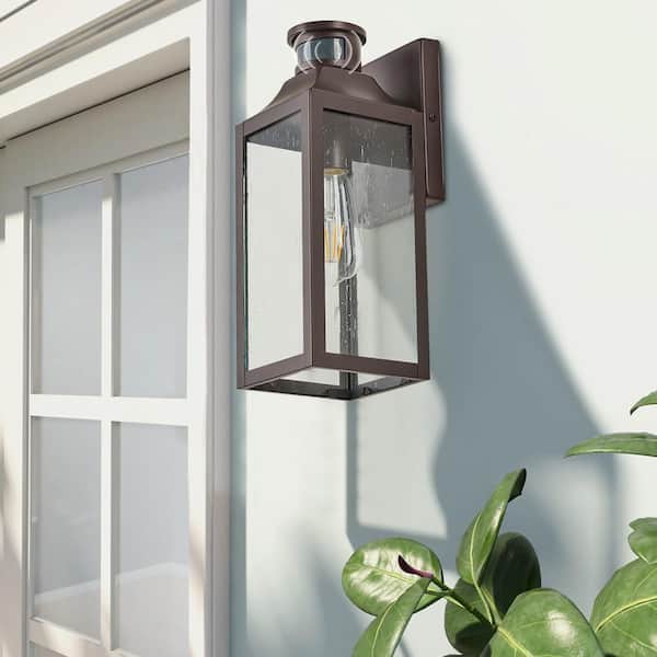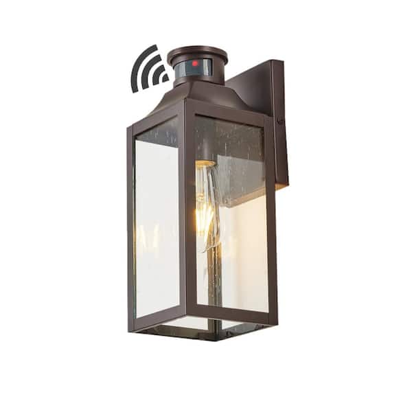 1-Light Oil Rubbed Bronze Motion Sensing Metal Outdoor Hardwired Wall Lantern Sconce with No Bulbs Included