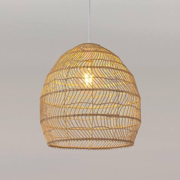 1-Light White and Natural Brown Woven Basket Chandelier with No Bulb Included