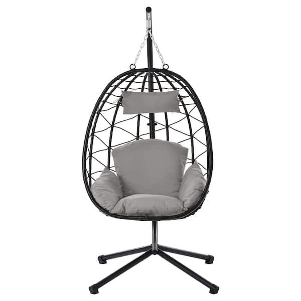 1-People Black Metal Patio Swing with Light Gray Cushion