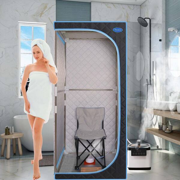 1-Person Portable Plus Type Full Size Steam Sauna Tent Portable Sauna with FCC Certification, Black (Blue Binding)