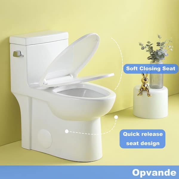 1-Piece 1.28 GPF Single Flush Elongated Toilet in Glossy White Seat Included