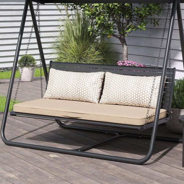 1-Piece 18.5 in. x 48 in. Rectangular Outdoor Bench Cushion in Beige